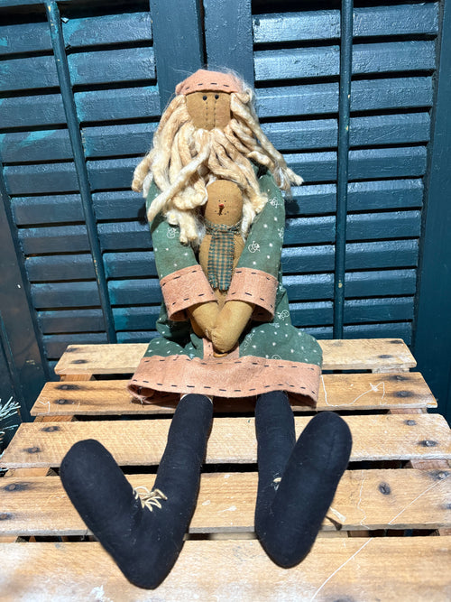 23” Primitive Old World Santa w Prim Snowman